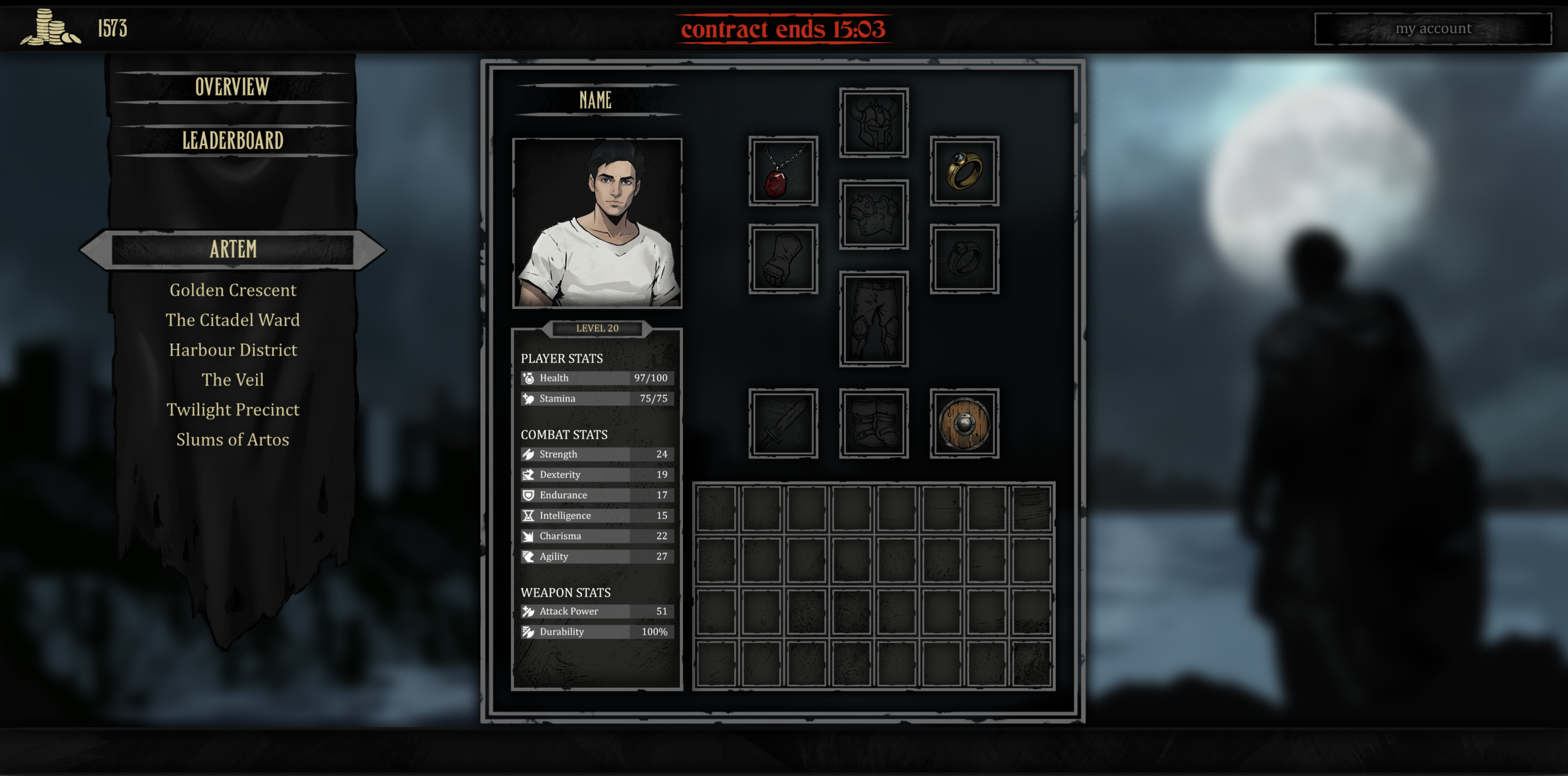 Contracts are narrative missions that define your rise (or fall) in the city of Artem. Each contract presents challenges that test your stats, equipment, and levels,  and how you grow your character determines if you’ll succeed or not.